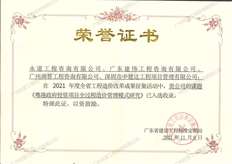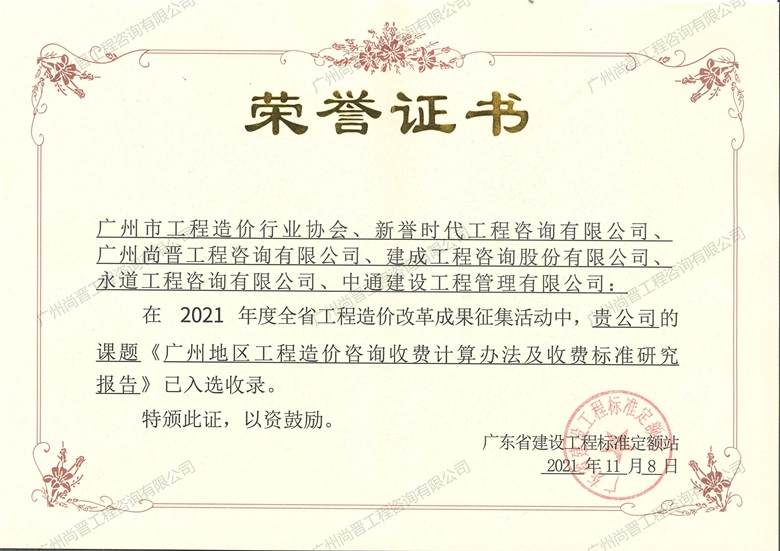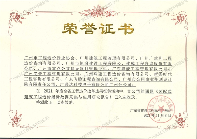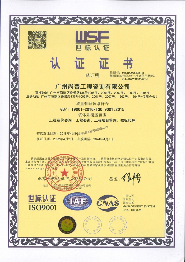 廣州尚晉工程咨詢有限公司(以下簡稱“尚晉咨詢“) 。具有建設部頒發的甲級工程造價咨詢資質、國家發展改革要頒發的工程項目管理資格證及廣東省工程建設招標代理資信A,是廣東省首批搭建大數據咨詢平臺進行全過程咨詢管控模式的公司之一,擔任廣東省工程造價協會理事單位、廣州市造價協會理事單位、廣東省建筑業協會理事單位等要職。     廣州尚晉工程...